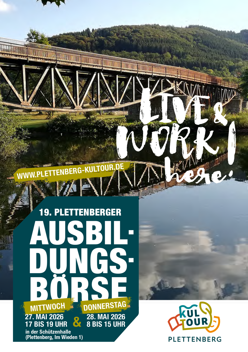 Die aktuelle Ausgabe KulTour-Zeit 2026 ist da. Die Veranstaltungen in Plettenberg laden dazu ein, zusammenzukommen, Neues zu erleben und unsere Stadt von ihrer lebendigsten Seite zu erfahren.