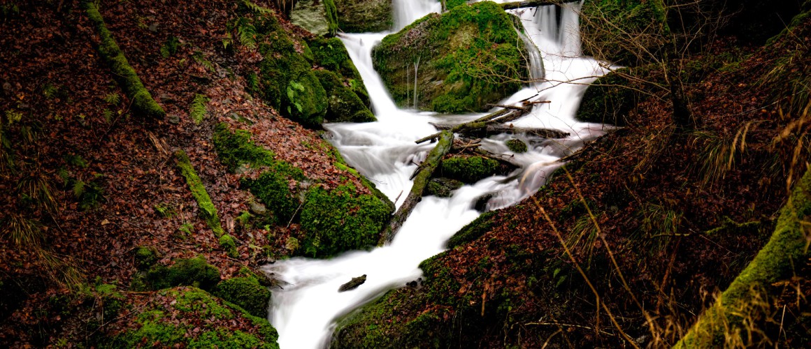 Unweit der Lenne hat sich ein Quellbach in den Fels eingeschnitten und damit eine andere kleine Welt mit einer bemerkenswerten Flora und Fauna und einer ganz eigenen, stillen Ästhetik geschaffen. Erholung bietet das unter Naturschutz stehende Kerbtal mit seinen beeindruckenden Felsen, zahlreichen Stromschnellen und kleinen Wasserfällen. Ginsterbüsche, Birken und Heidelbeersträucher lockern die schattigen Fichten-, Buchen- und Eichenwälder immer wieder auf. Bewundern Sie die großen Farne und vielfältigen Moosarten, die den Waldboden wie einen Teppich belegen und die reiche Tierwelt mit Feuersalamandern, Kleinspechten, Fröschen und mehr als 900 Käferarten.
