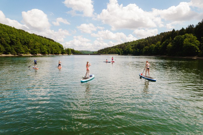 Seit 2020 findet in Zusammenarbeit mit der DLRG Ortsgruppe Plettenberg e.V. in den Sommermonaten jeden Samstag und Sonntag ein Verleih von Stand Up Paddle (SUP) - Boards an der Oestertalsperre statt.