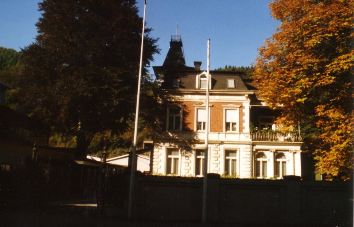 »Das Gebäude ist im Jahre 1887 neu aus bestem Material und nach den besten Regeln der Technik gebaut. Die äußeren Wandflächen und Architekturteile wurden noch im letzten Jahre mit Ölfarbe gestrichen. Das Gebäude liegt an der Hauptstraße und hat städtische Wasserleitungen.«
